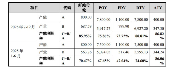 在盈利能力下滑的同时,欣战江的产能规划与实际利用情况也存在明显矛盾,成为北交所问询的重点之一。2022年至2024年,公司各类产品产能持续提升,2025年2月,“年产6000吨有色涤纶长丝和年产2000吨捻线项目”正式投产,产能规模进一步扩大。