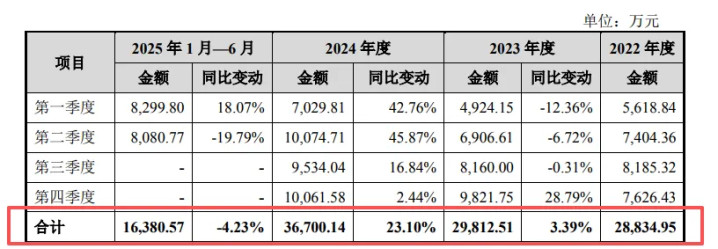 从财务表现来看,公司营收增长但盈利稳定性明显不足。2022年至2024年,公司营收由2.89亿元增至3.69亿元,公司归母净利润却大幅波动,2023年公司归母净利润同比下降17.38%,2024年同比增长17.50%,两年间波动幅度超34个百分点;与此同时,公司毛利率连续三年下滑,累计下降3.78个百分点至31.61%。进入2025年,公司营收压力进一步显现,上半年营收1.65亿元,同比下降4.44%,其中二季度降幅达19.79%。